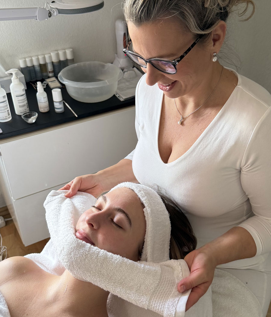 Reinigung, Enzympeeling, Mikrodermabrasion, Ausreinigung, Augenbrauenkorrektur, Tiefenpflege mit Wirkstoffkonzentrat und Ultraschall, Maske und Abschlusspflege